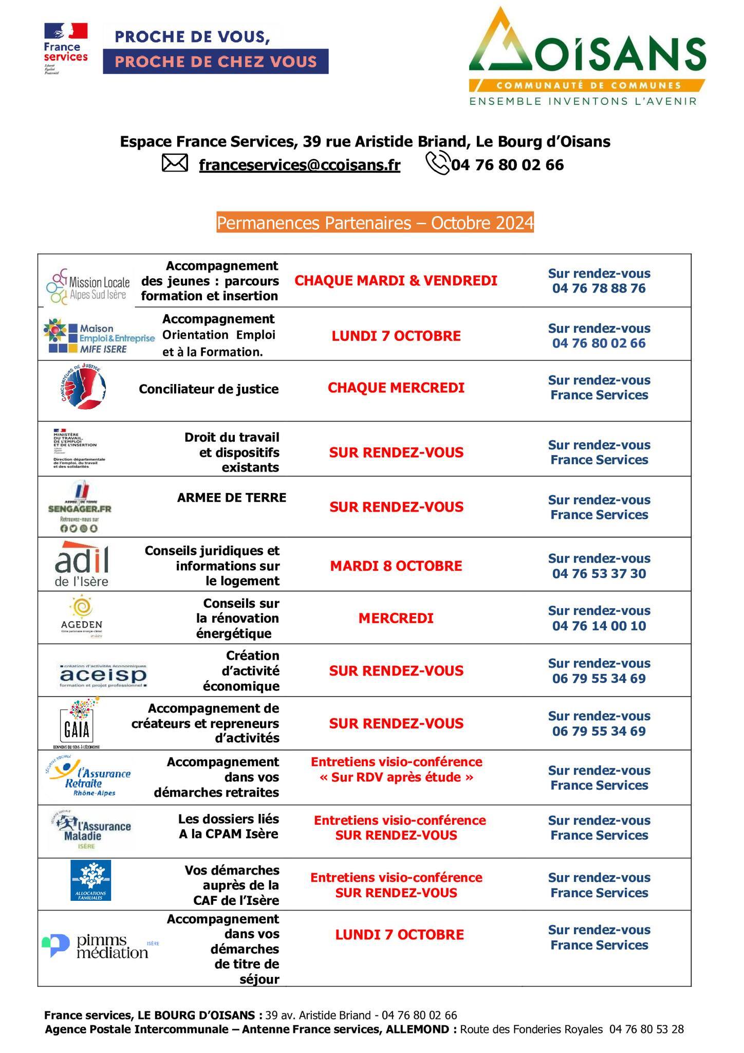 Planning France Service - Octobre 2024 planning octobre à télécharger Le planning pour le mois d'octobre est disponible. Pensez à bien prendre rdv aux numéros indiqués